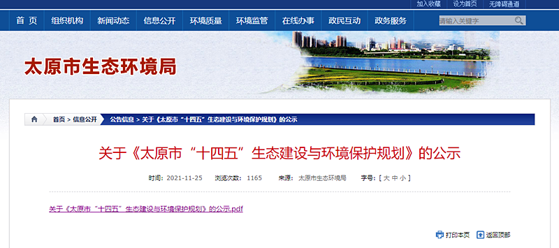 文章來源:地大熱能 發布作者:太原市生態環境局 發表時間:2021-12-22 08:45:06瀏覽次數:3768