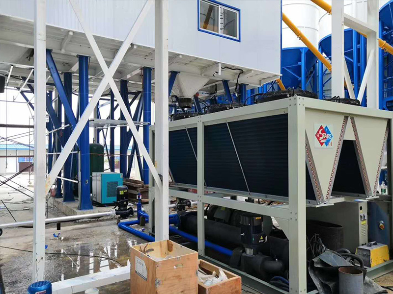 在混凝土攪拌站中原來的冰水的速度實(shí)在是太慢了,新項(xiàng)目采用恒星風(fēng)冷螺桿冷水機(jī)組的冰水系統(tǒng),速度快,穩(wěn)定,提高了生產(chǎn)效率。
